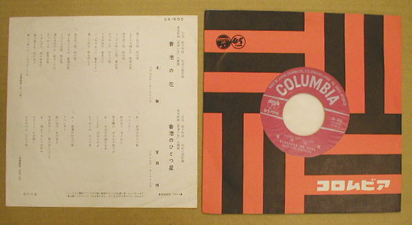 1962年、定価表記無し/東宝映画「香港の星」主題歌、いずれも岩谷時子作詩、松井八郎作曲/ジャケ多少シワ、チリチリノイズあり
